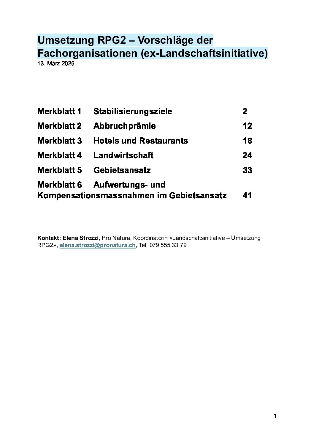 13.3.2026 Merkblätter zur RPG2-Umsetzung in den Kantonen Download Dokument "Merkblätter 1-6" Partnerorganisationen: